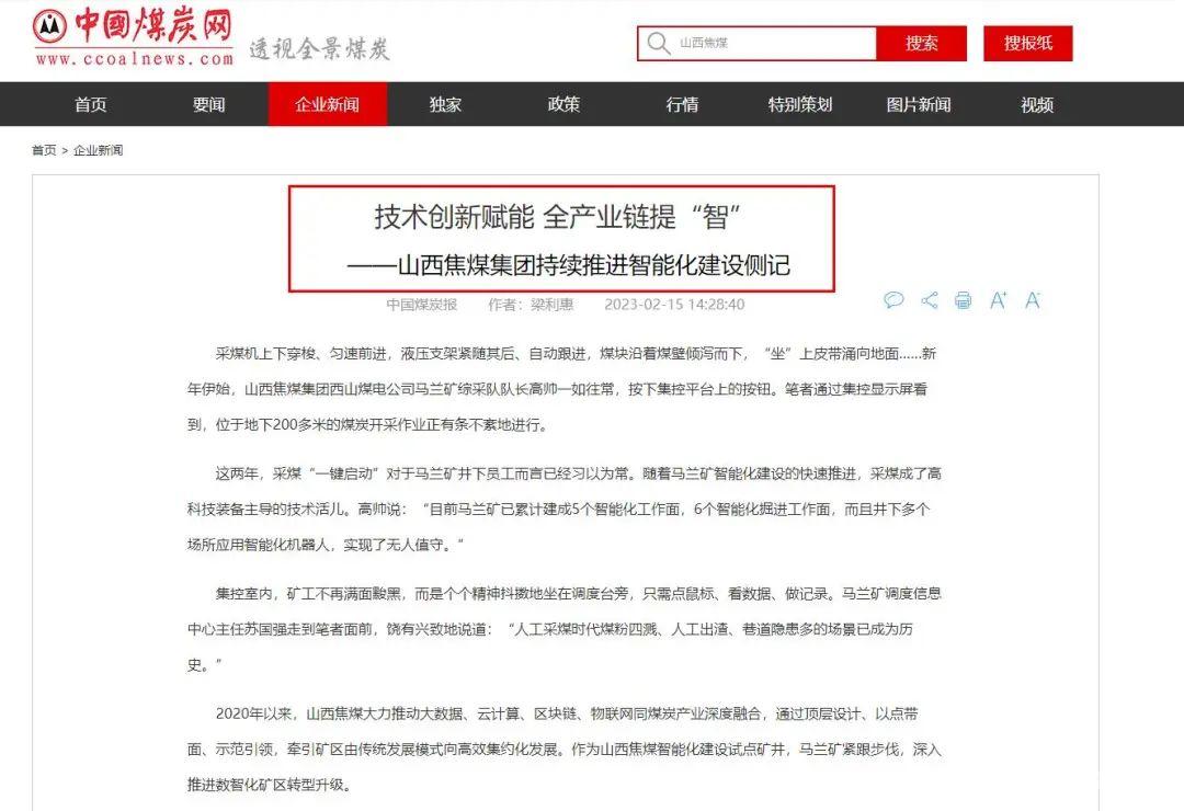 与马兰矿智能化建设同时起步,山西焦煤采、洗、配、销和经营管控各个环节依托数智化,实现了生产方式和管理形态的深刻变革。