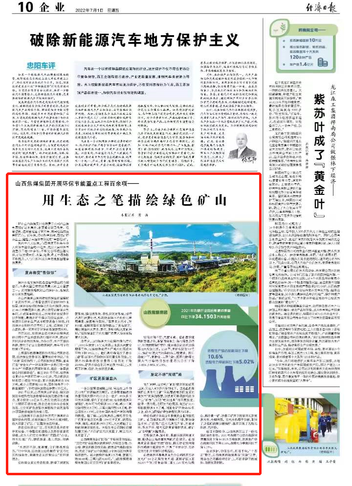 生态保护,功在当代,利在千秋。“十四五”期间,山西焦煤将继续勇担“双碳”之责,用生态之笔描绘绿色矿山,不断开辟节能减排、低碳发展新路。