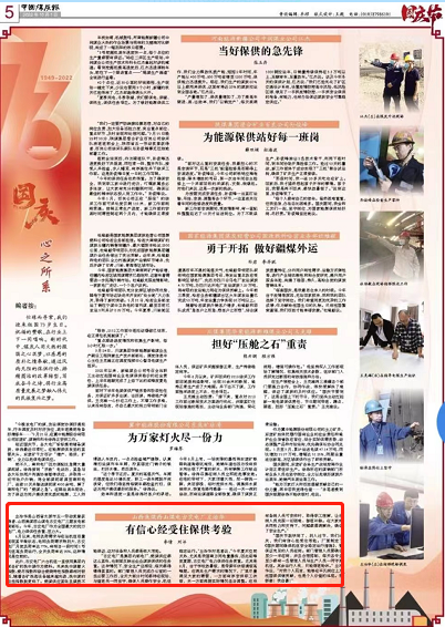 “国庆节就快到了,别人过节,我们过关,我们有信心经受住考验。厂里制定了《国庆期间确保机组安全稳定运行措施》,要保证充足的人员在岗。部门管理人员要确保至少一半在岗,并且合理搭配,每天各专业至少都有一名管理人员与生产人员一同守护机组。其余运行人员,只能倒班轮休。”左治华说,“对我个人而言,能够在平凡岗位上为祖国保供做贡献,也是个人价值的体现。我骄傲!我自豪!”(李倩 刘洋)