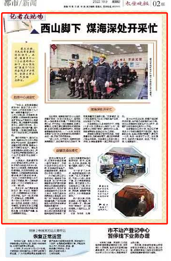 指挥中心调度忙 “牛队长,夜班巷道掘进顺利吗?推进了多少米?”“23601工作面夜班割了几刀煤?煤库存量有多少?”……10月3日早6时,天色微明、秋风萧瑟,山西焦煤西山煤电官地矿安全生产指挥中心调度员晋弘,身上带着寒气走进指挥中心,来到工作台前。他一边与值班人员对接产量、进尺等数据,一边通过视频电话,与井下各队协调工作进展情况。 窗外细雨纷飞、窗内灯光明亮,指挥中心的工作人员按照日产计划任务,监测着井下设备运行技术数据,确保24小时不间断安全生产。晋弘目光落在智能化监控大屏上,井下各项生产数据实时变化,各个生产区域的作业画面一“幕”了然。 大屏显示,在新建成的23601智能化综采工作面,以队干部为主的技术攻关小组,每天12小时跟班,在略显湿滑的巷道里,对支架电液控、远程集控、工作面视频监控系统等设备进行调试和检修。“23601工作面的智能化水平实现了再提速,割一刀煤由原来的一个半小时缩短至一个小时。”晋弘说。 早上8时,生产调度会准时召开,像一本台历,每翻开一页,代表着崭新而又忙碌一天的开始。生产一线、技术部门、运输站点、后勤保障……各个岗位上的负责人一边记录一边交流,总结前一天的工作情况,安排当天的工作重点,研判可能出现的风险并提前处置,以实现稳产保量,全力保障煤炭发运。