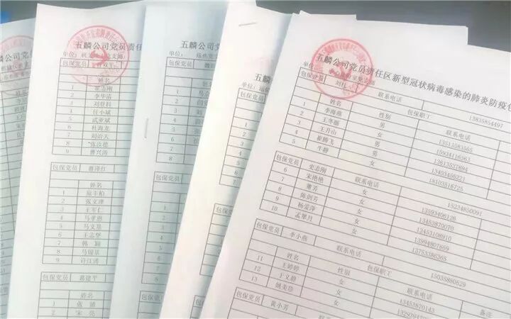 为全面深入贯彻落实习总书记对关于防疫工作的重要指示精神,认真贯彻落实省委书记楼阳生提出的“五严五防”要求和两级集团公司防疫重要会议文件精神,充分发挥党组织在防疫阻击战中的战斗堡垒作用和党员的先锋模范作用,五麟公司以党委为核心、党支部为支点、党员为基准点建立起了“党员责任区新型冠状病毒感染的肺炎防疫包保网络”,并要求以党支部为单位,每日上报包保网络防疫情况,为五麟公司的防疫工作建立起了一道严密的防火墙。“党员责任区新型冠状病毒感染的肺炎防疫包保网络”的建立,充分发挥党委在防疫中的主体责任,充分彰显了广大党员的重任担当、使命担当,让党旗在五麟公司防控疫情的第一线高高飘扬。