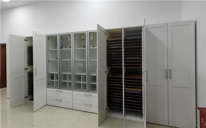 该公司针对建企时间长,获得的荣誉牌匾、奖杯比较多,档案整理难度大的情况,他们研发出了新型牌匾柜,将牌匾展示与储存融为一体,以斜角隔离方法存放,既可展示又便拿取,还可通风除湿,并拍照扫描形成电子档案。这样一组牌匾柜可以存放上百个牌匾、奖杯、锦旗等档案。他们还在对一些企业的作废印章管理方面,创立了印章柜、印章盒、印章标签、印章目录、印章模印等整套管理系统及保存办法,一举解决了令人困扰的难题。
